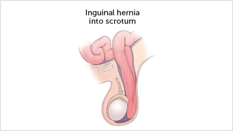 - in hernia, inguinoscrotal, scrotum