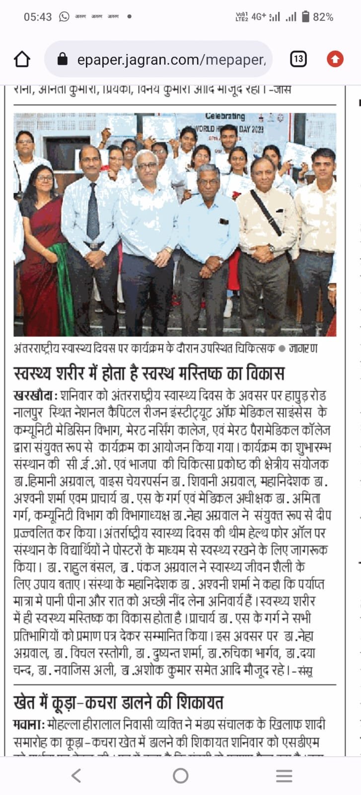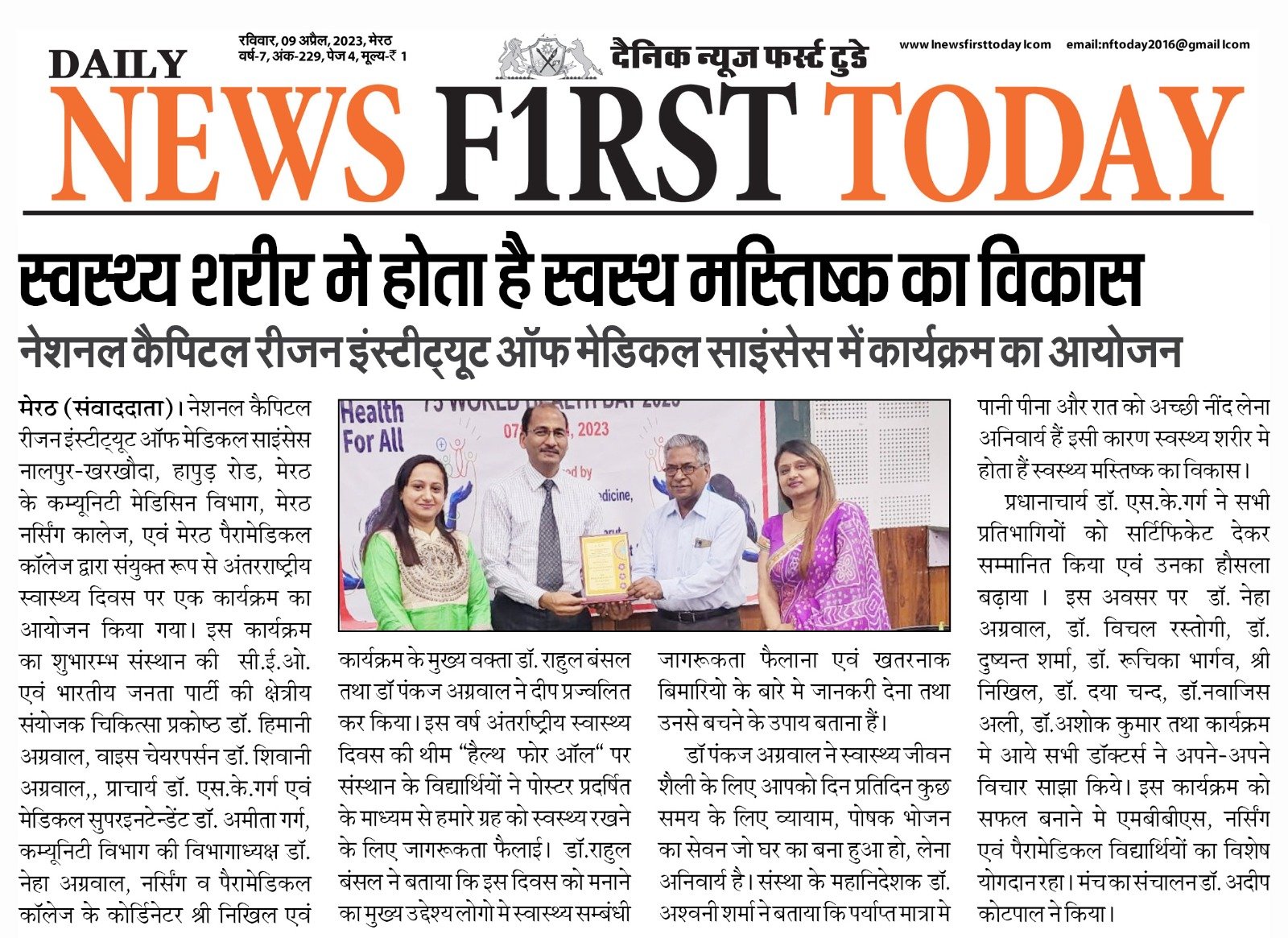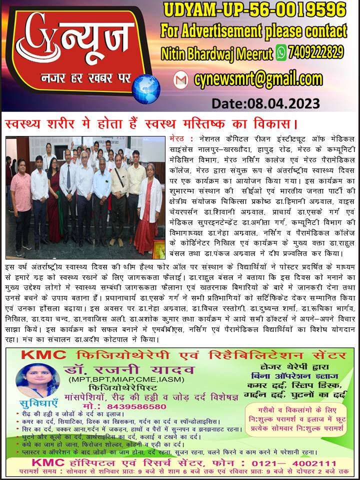 NCR इंस्टीटयूट ऑफ मेडिकल साइंसेज में हिंदी में व्याख्यान
