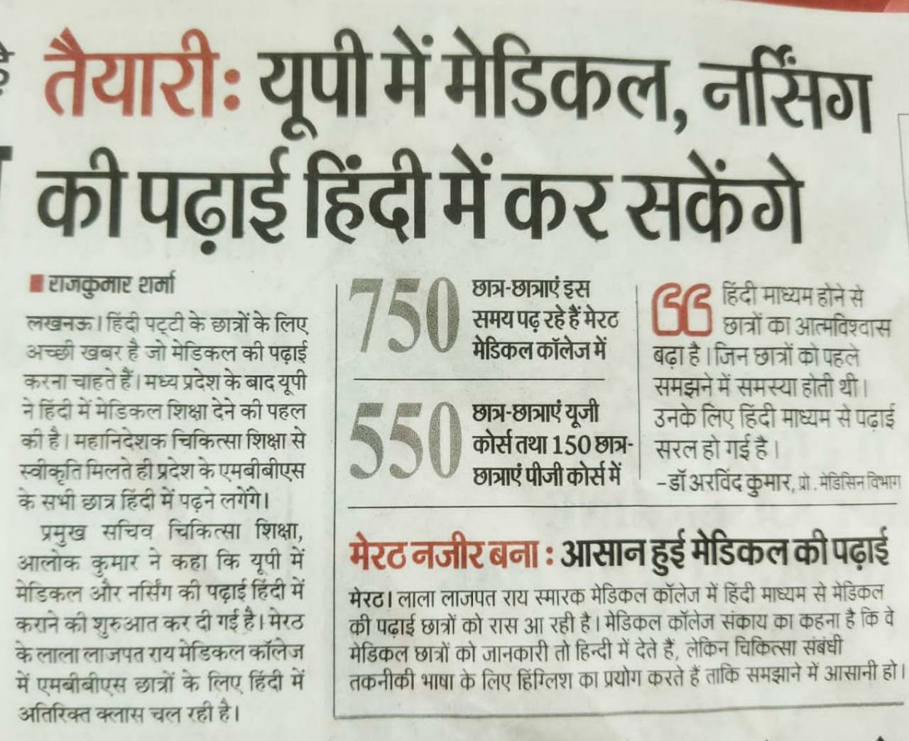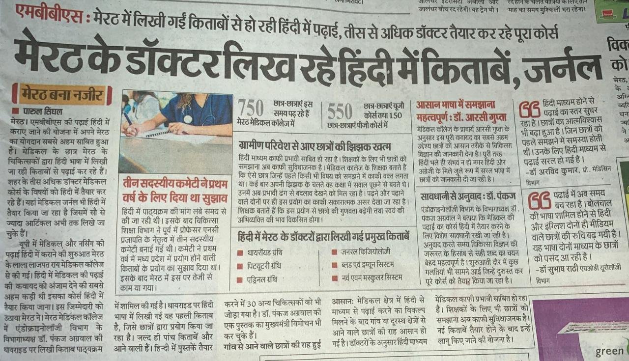 मेडिकल कॉलेज मेरठ में ह्यूमन फिजियोलोजी की रक्त विज्ञान पर लिखी हिंदी में प्रथम पुस्तक का विमोचन