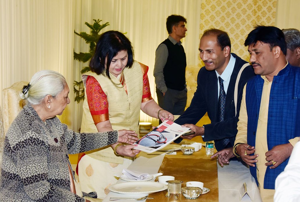 उत्तर प्रदेश की राज्यपाल श्रीमती आनंदीबेन पटेल जी को मेडिकल साइंस के हिंदी में प्रथम ई रिव्यू जर्नल, पुनर्नवा, की भेंट